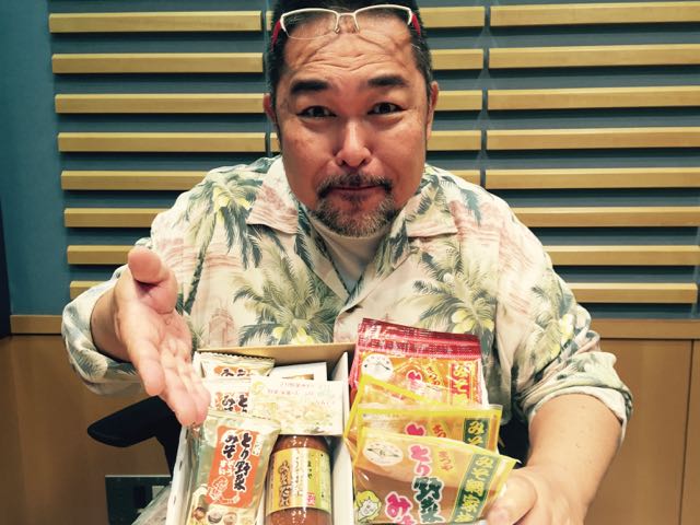 まつやさんから、「とり野菜みそ」セットをいただいてご機嫌な熊八さん。