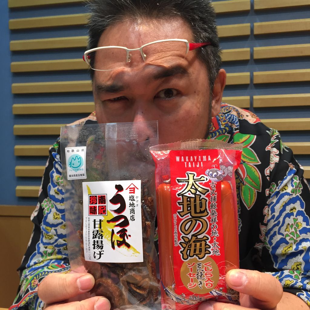 収録の合間に、スタッフから差し入れ。和歌山のアンテナショップでゲットした「うつぼ甘露揚げ」と「くじら入りのソーセージ」! お酒に合いそうな味で、おいしかったです。